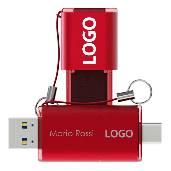 La chiavetta USB Shift è dotata di un connettore USB standard ad un'estremità e di un connettore USB-C all'altra, compatibile con i più recenti computer, laptop, smartphone e altro ancora. i connettori USB escono tramite il pratico meccanismo di scorrimento. Il modello Shift è inoltre dotato di un pratico cavo che può essere facilmente agganciato a un set di chiavi o a un cordino. Possiamo serigrafare o incidere a laser il tuo logo nell'area dedicata alla stampa. Contattaci oggi per avere informazioni sui nostri prezzi e opzioni di consegna.